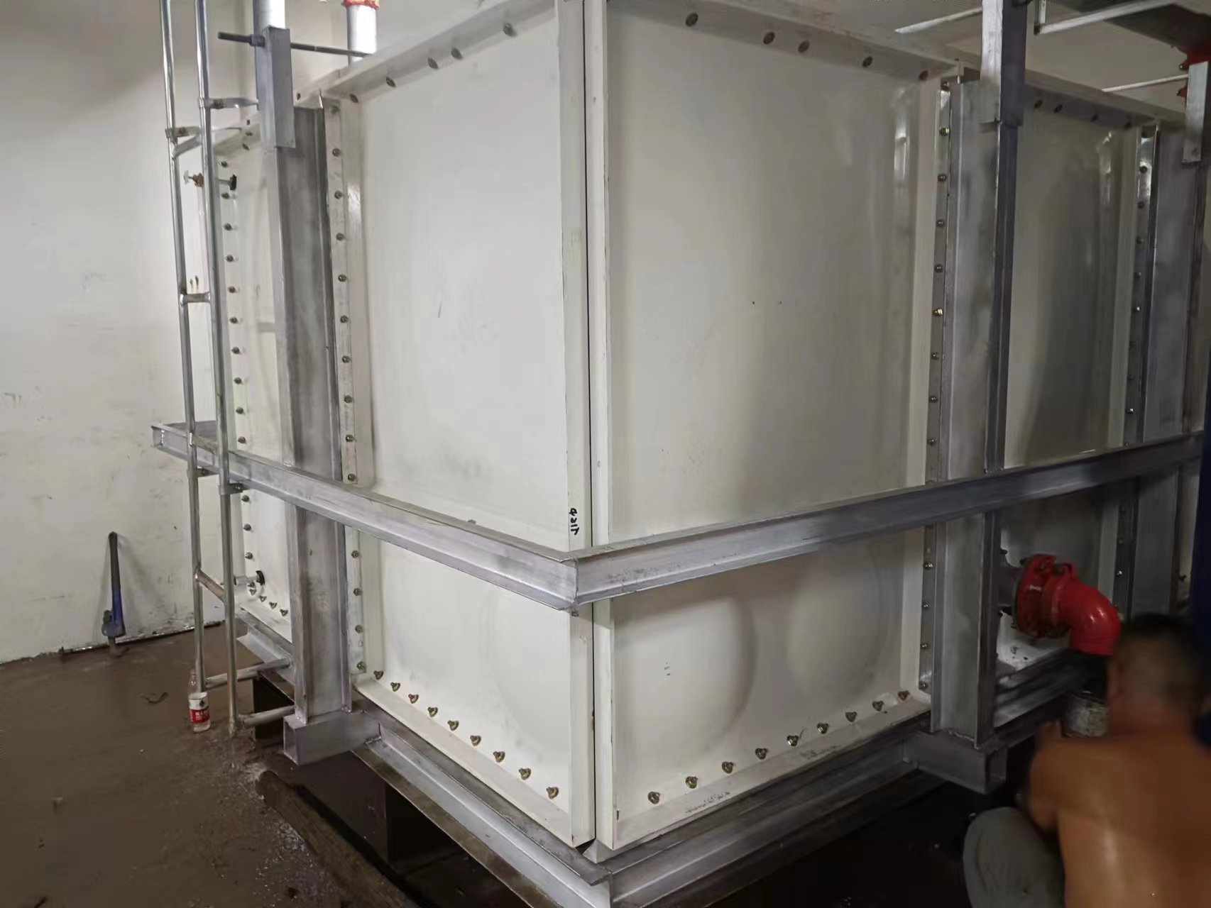 由于使用環(huán)境及使用介質(zhì)所限,有些水箱內(nèi)部盛有高濃度溶液,如:濃鹽水、海水等,對(duì)水箱內(nèi)壁鋼板會(huì)有嚴(yán)重腐蝕,因此無(wú)法采用不銹鋼水箱或者鋼板水箱。正常玻璃鋼水箱板可以耐腐蝕,但是水箱內(nèi)部又設(shè)有鋼制拉筋支撐等,故此也不適用以上介質(zhì)使用。為了滿足特殊用戶的使用需求,經(jīng)過(guò)承重及承壓測(cè)試后,這種無(wú)內(nèi)件玻璃鋼水箱面世,它采用不同規(guī)格(1000*1000mm、1000*500mm、500*500mm)的玻璃鋼模壓板組裝,水箱內(nèi)部沒(méi)有設(shè)任何鋼制配件,水箱外部及底部采用工字鋼加固,所有法蘭采用ABS材質(zhì)俗稱塑料材質(zhì),外觀整潔無(wú)變形,內(nèi)部無(wú)配件,易清洗、維護(hù)方便,延長(zhǎng)了水箱的使用壽命,滿足特殊用戶的特殊需求。
