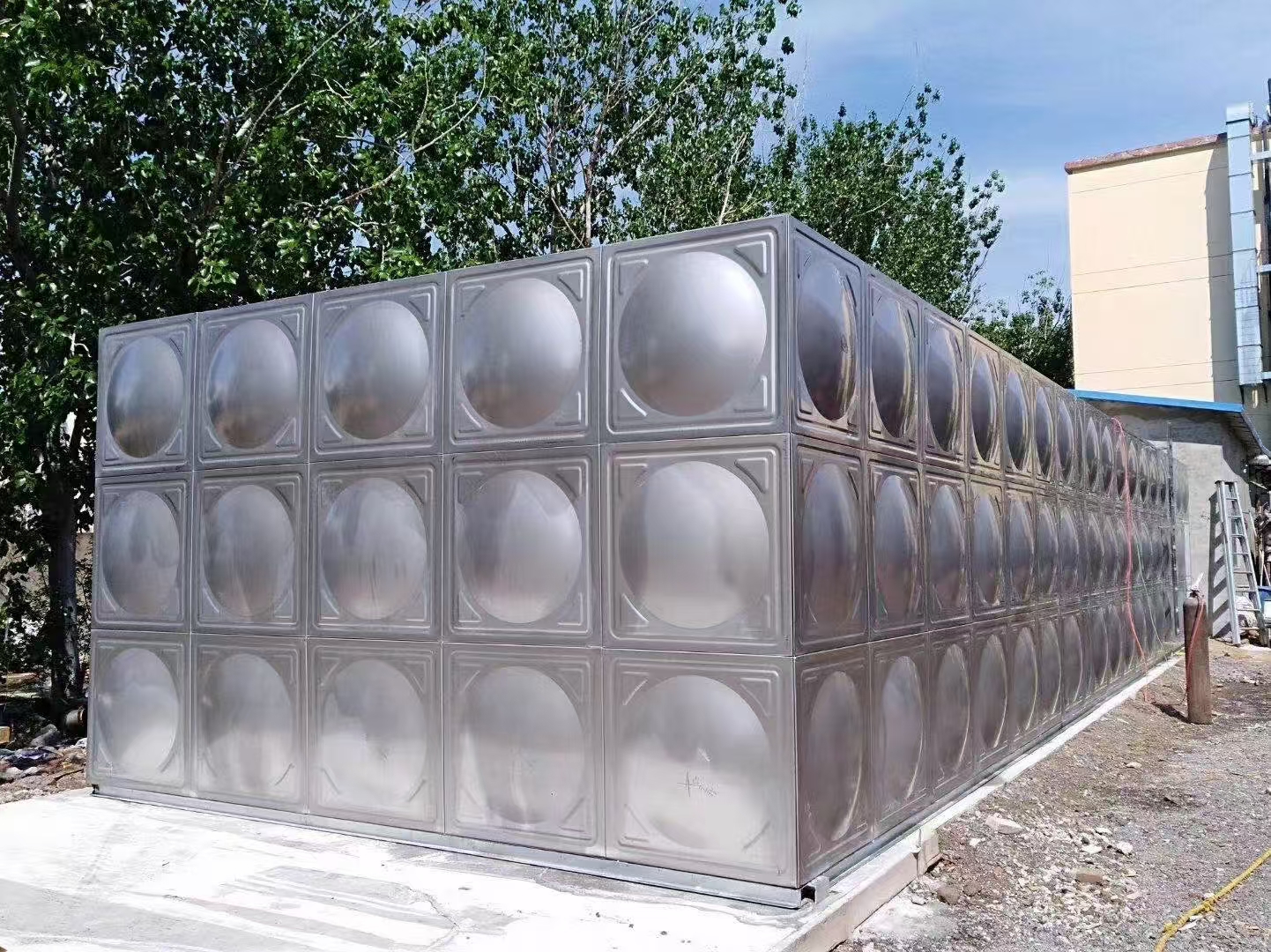 3、固定側板:將經檢測合格的水箱壓制板按照順序點焊在水箱底板上,每張板在固定以后,均應用水平尺和線墜檢測垂直度,無誤后再點焊下一張, 直至所有側板點焊完成。