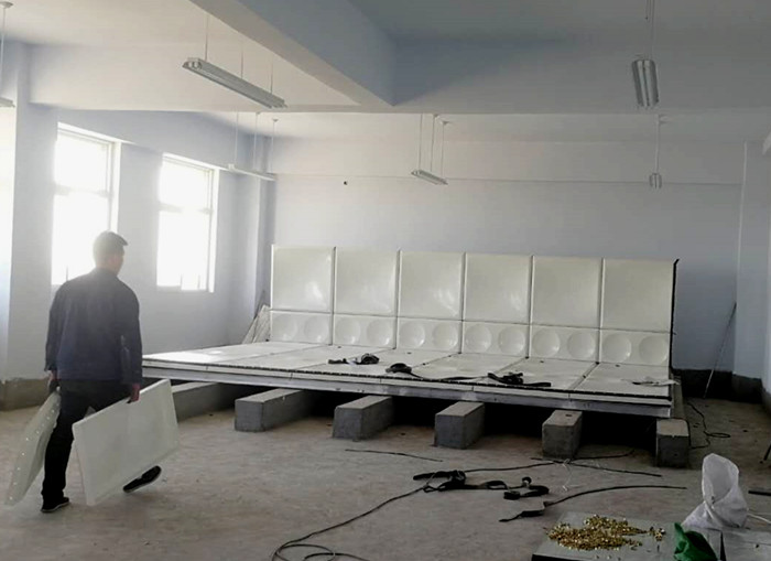 土建施工時先做好支墩,水箱四周及箱體板塊之間的連接縫應落在支墩上。
